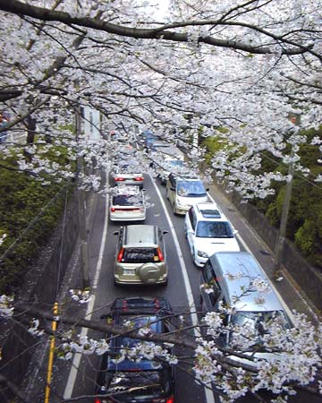 桜の季節の休日はものすごい人出で、桜坂も大渋滞。